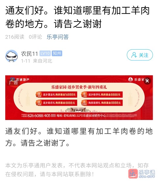 第4轮:互动星期天通友问答环节!乐亭哪里有加工羊肉卷的地方?