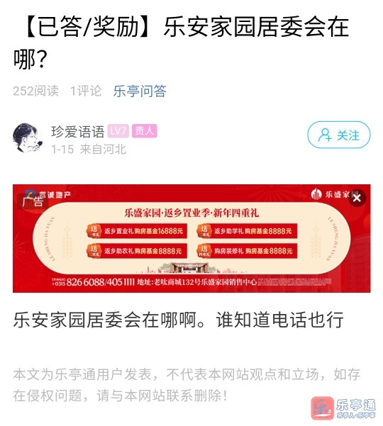 第6轮:互动星期天通友问答环节!乐安家园居委会在哪?