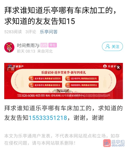 第8轮:互动星期天通友问答环节!乐亭哪有车床加工的?