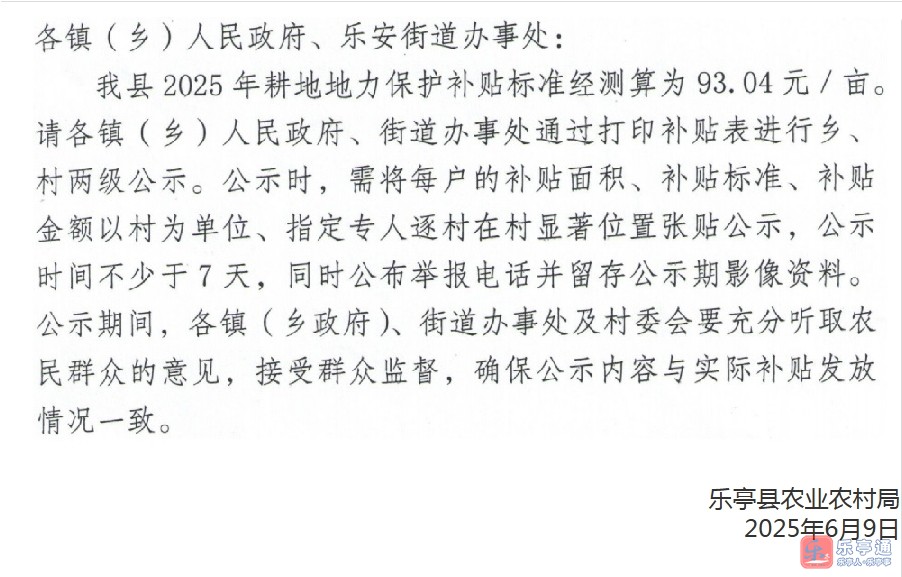 @乐亭所有农户!93.04元/亩,补贴标准公布!