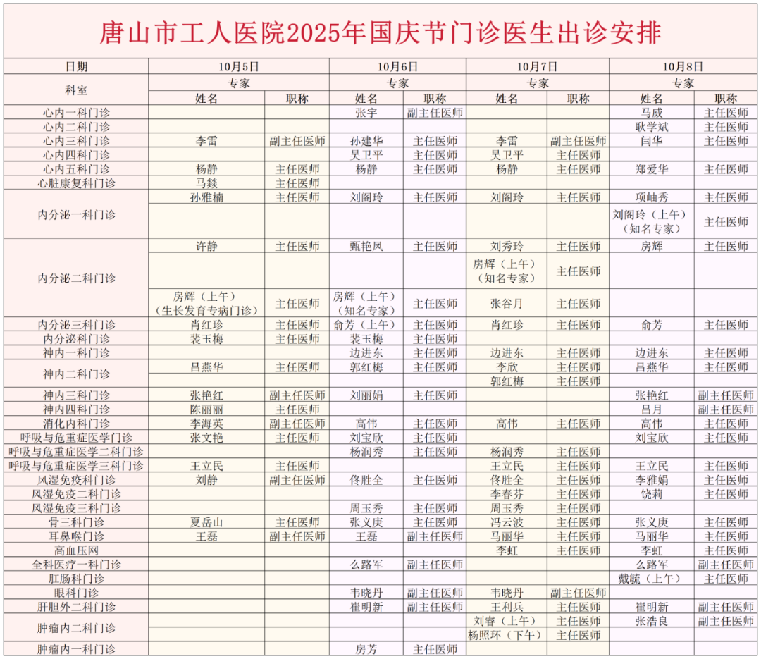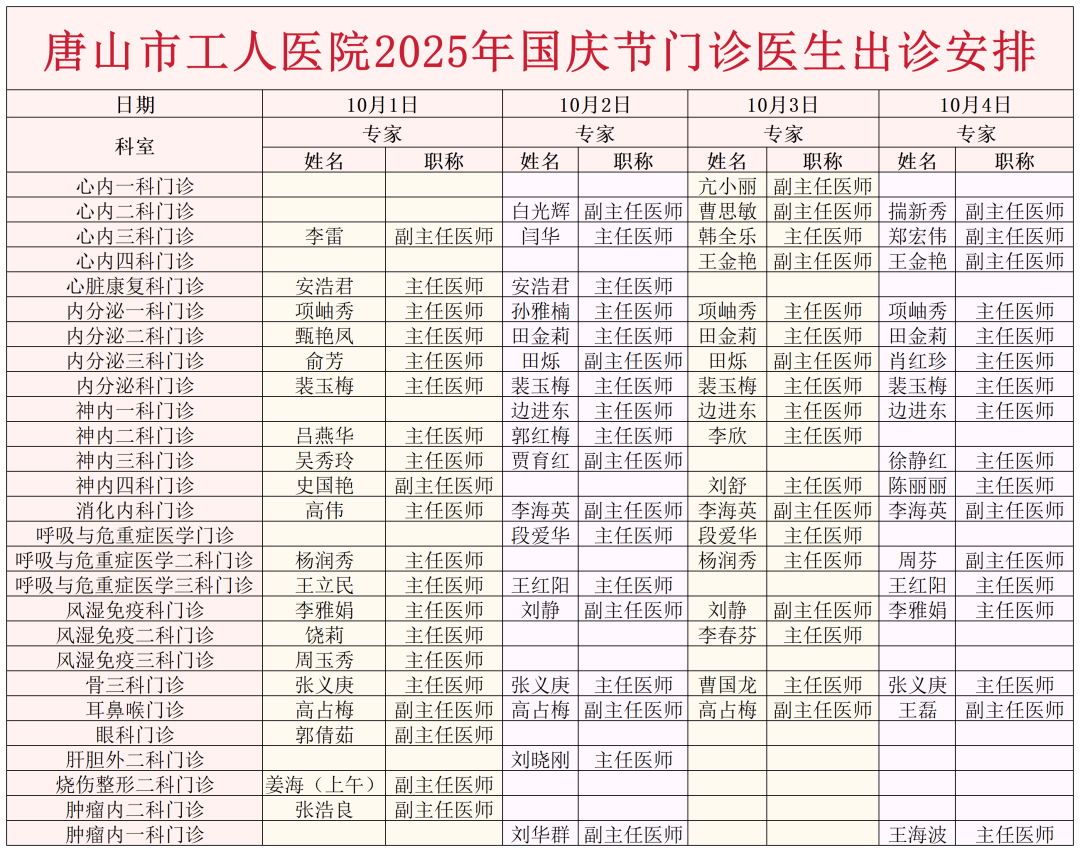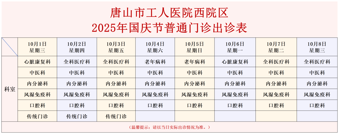2025.10.1-10.8放假8天,我院门诊正常开诊科室: