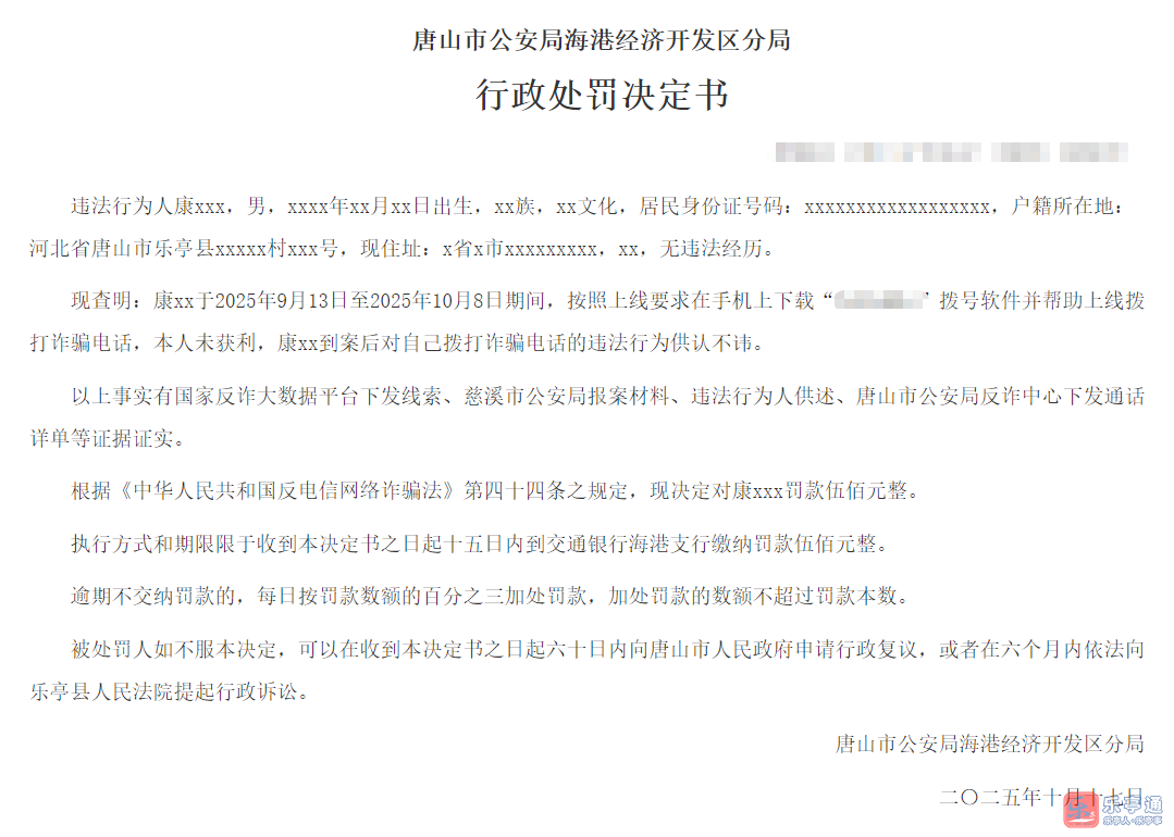 乐亭康某某“打电话”被警方处罚,这事儿要警惕!