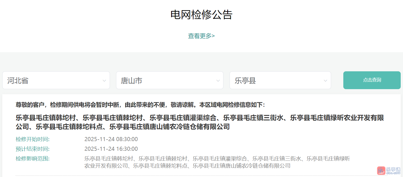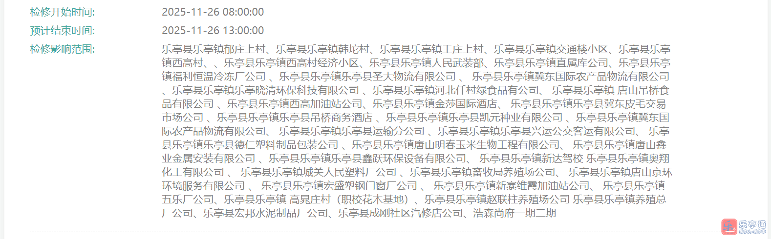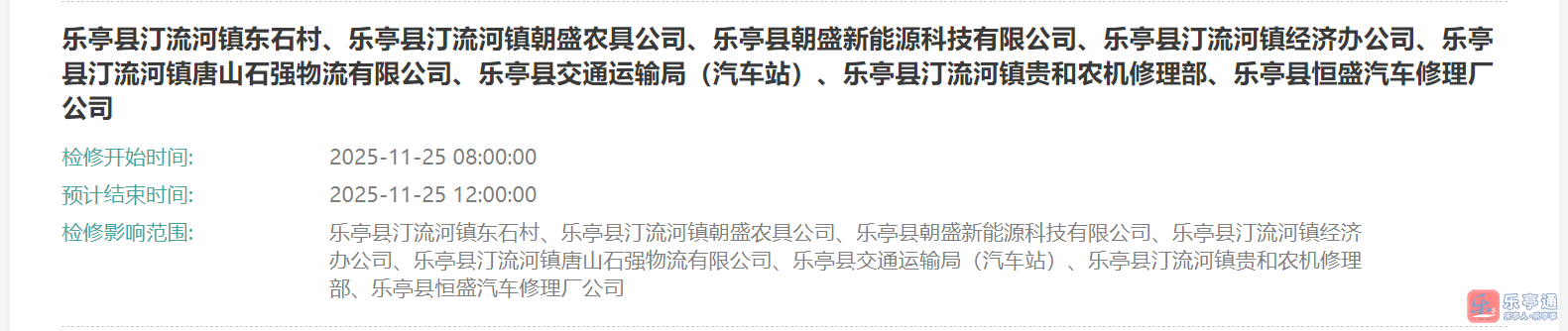 停电检修!11.24-26日,涉及乐亭多地,扩散周知!