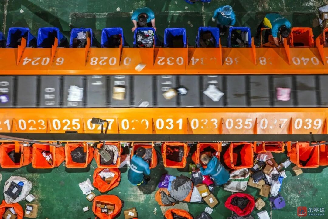 中国邮政集团有限公司河北省遵化市分公司的工作人员在分拣快递包裹(无人机照片)。(资料片) 新华社发(刘满仓摄)