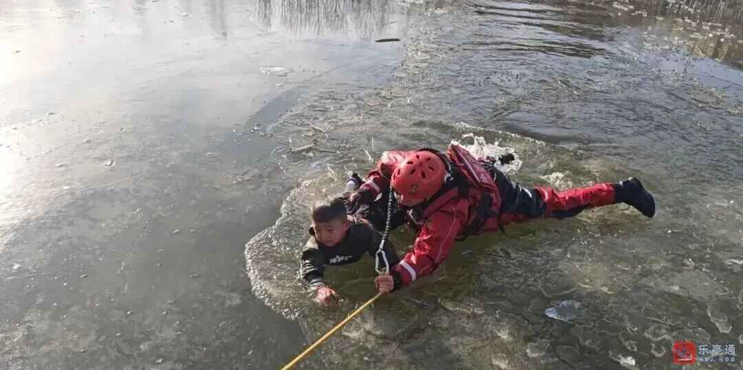 案例二:12月6日,某地一湖边,一名4岁男孩在冰面玩耍时,因冰层破裂落水。骑车路过的13岁女孩李某在营救过程中也不慎坠入湖中。最终两人被岸边大人和随后赶到的消防救援人员成功救出!