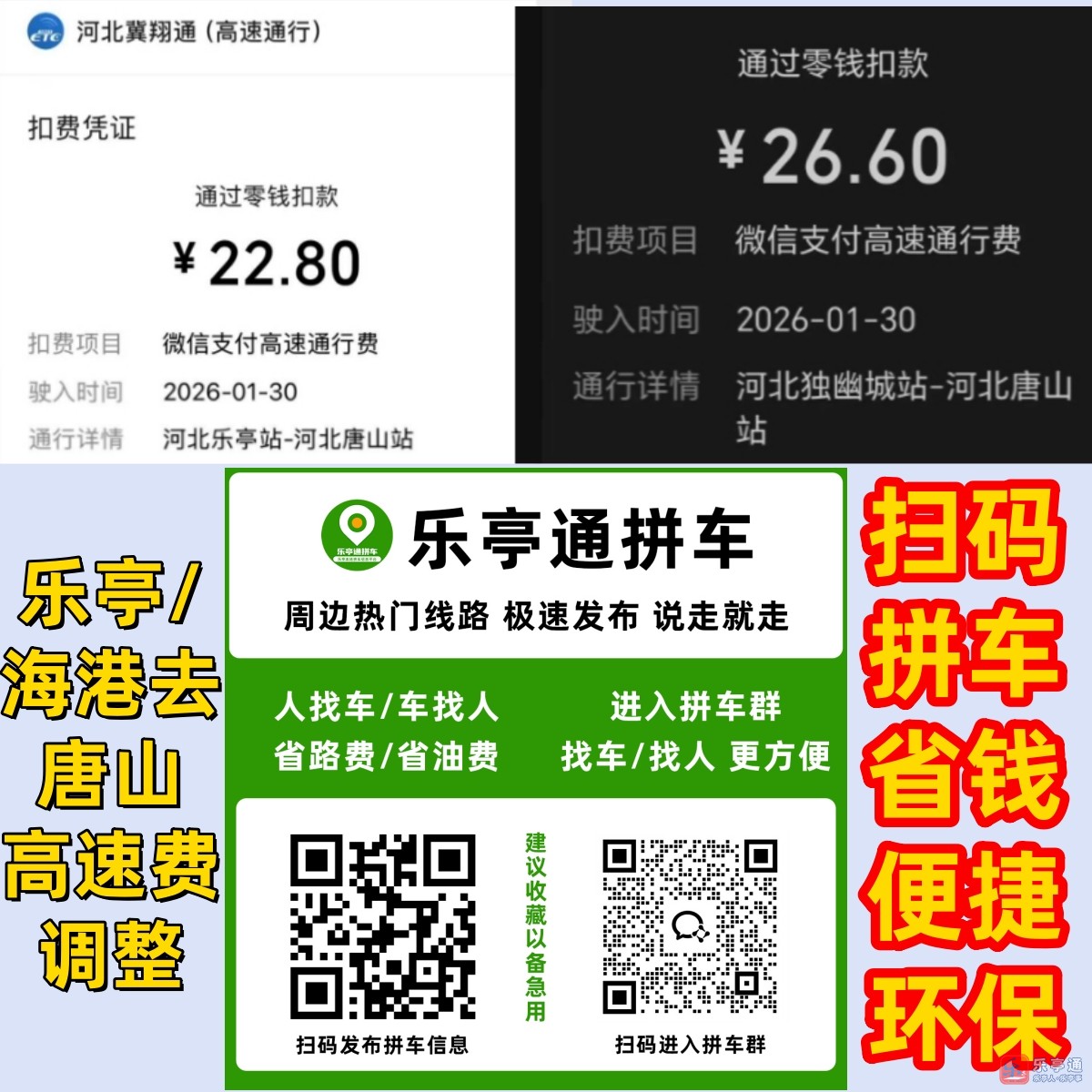 乐亭/海港去唐山!高速收费1月30日起有变!