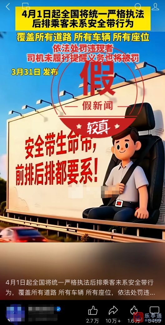 网传“4月1日起全国统一严查后排未系安全带”系自媒体编造,不存在全国性新规或专项行动,多地交管部门已明确回应“未接到通知”。后排乘客系安全带本就是《道路交通安全法》规定的义务,并非什么新要求,部分城市早已有当地的处罚条例。